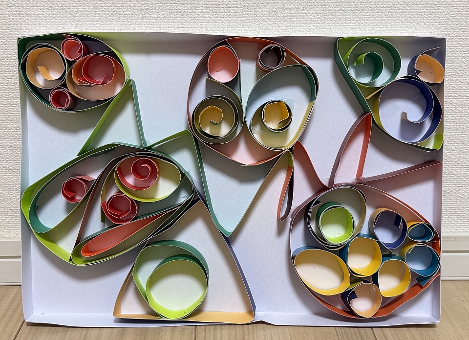 「ローズウィンドウ」とは、ゴシック建築の教会にある丸いステンドグラス=薔薇窓を紙で表現したアートです。(一般的には紙を折って作るため、同じ色と形の繰り返しのデザインになります。)